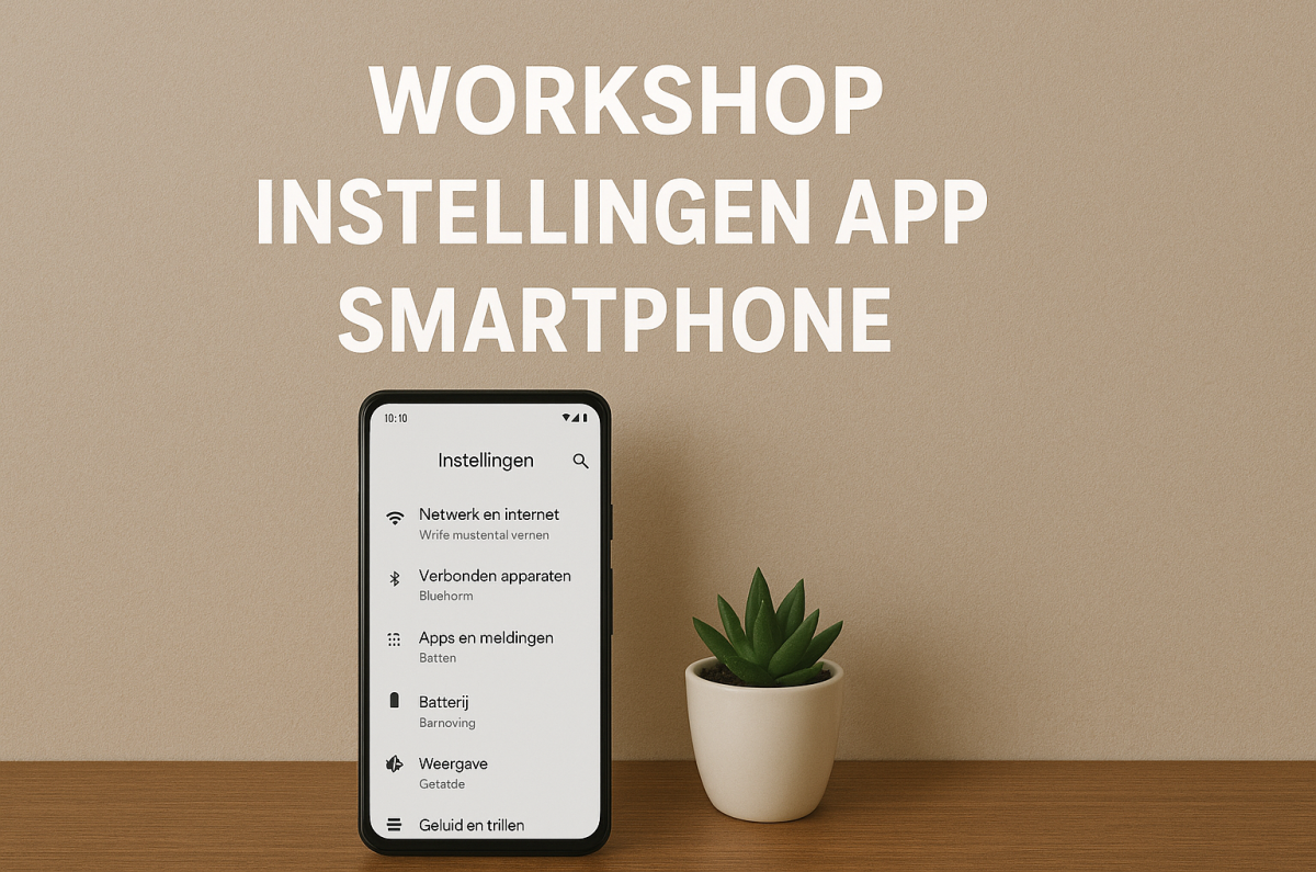 Tijdens deze gezellige workshop leer je stap voor stap je Android-telefoon instellen zoals jij het wilt. Van wifi en meldingen tot scherm, privacy en handige tips - je ontdekt hoe je je telefoon veilig, overzichtelijk en tof in gebruik maakt.