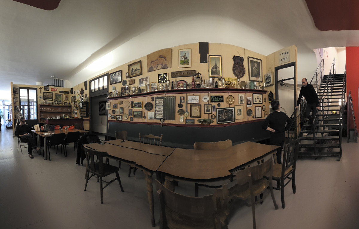 Allesbehalve een gewone expo in het BOp de komende maanden. Tot eind juli staat er in de foyer op het gelijkvloers een heuse reconstructie, op ware grootte, van de teloorgegane staminee ‘Aux Trois Rois’ in Schaarbeek. Welkom bij BOp & Bobette, die voor de gelegenheid een volledig nieuwe BOp-drankenkaart hebben samengesteld met lokale bieren en niet-alcoholische alternatieven.